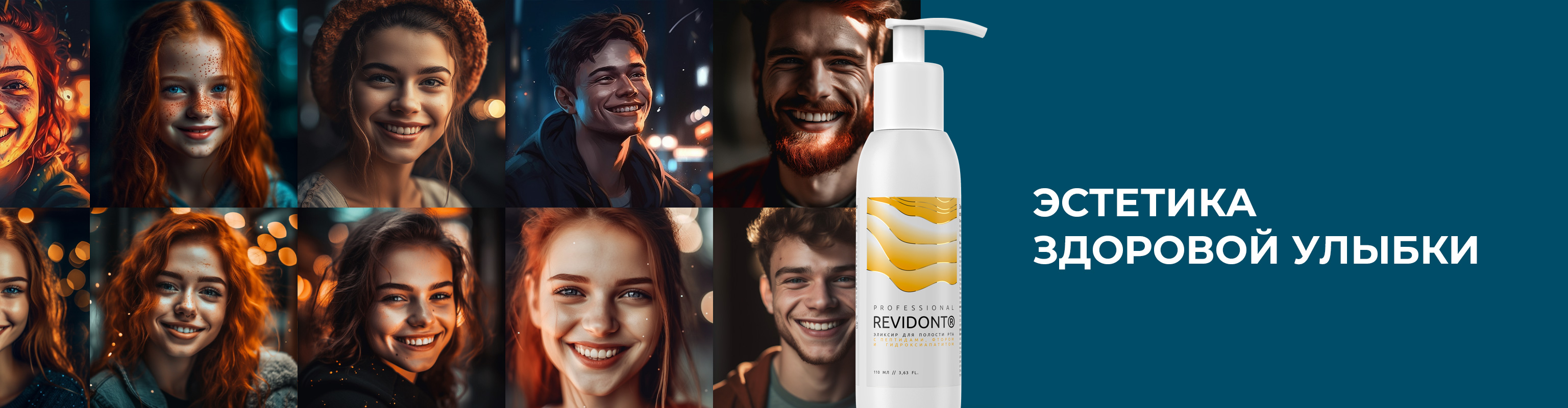 В ассортименте нашей компании есть специальная серия средств по уходу за полостью рта Revidont Professional, включающая зубные пасты, бальзам для десен, зубную щетку и Эликсир для полости рта с пептидами. Этот продукт нацелен на укрепление зубной эмали, защиту зубов от кариеса, подавление размножения патогенной микрофлоры; кроме того, он обеспечивает свежесть дыхания и дарит ощущение чистоты всей полости рта.
